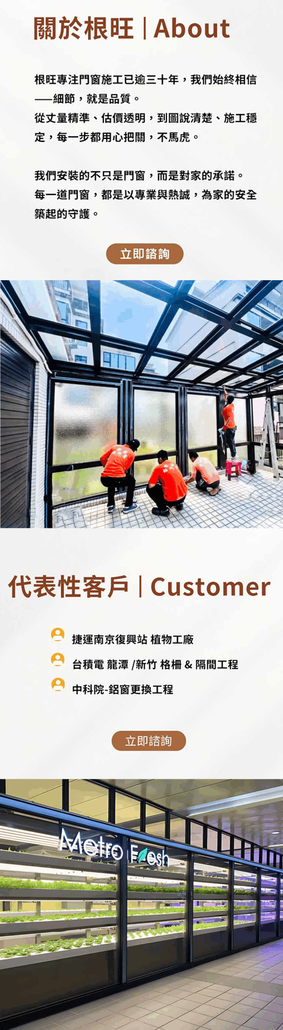 ✅ 根旺會依照您家中環境與預算需求,提供最適合的雨遮設計與材質建議,確保功能、美觀與安全兼具。