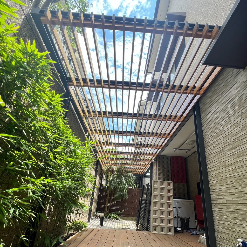 不透光但堅固耐用,能有效遮陽與防雨,缺點是無法採光,搭配人工草皮可以減緩雨聲。